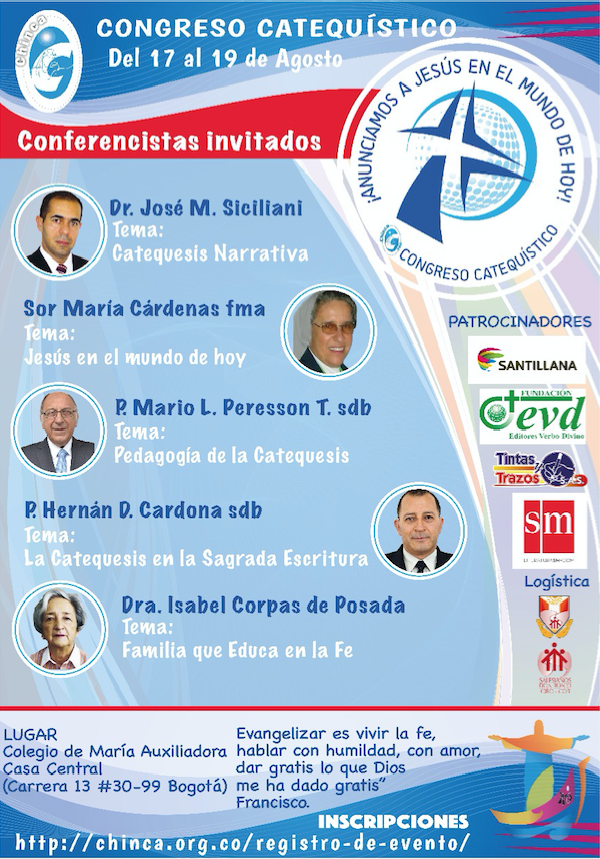 El Congreso de Catequesis está dirigido a todos los agentes de pastoral y de catequesis: Docentes, Sacerdotes, religiosos, jóvenes y adultos catequistas y familias comprometidas con la evangelización de la Iglesia que vibran con el anuncio vivo de Jesucristo y quieran compartir sus experiencias, testimonios y enriquecer su quehacer catequístico.