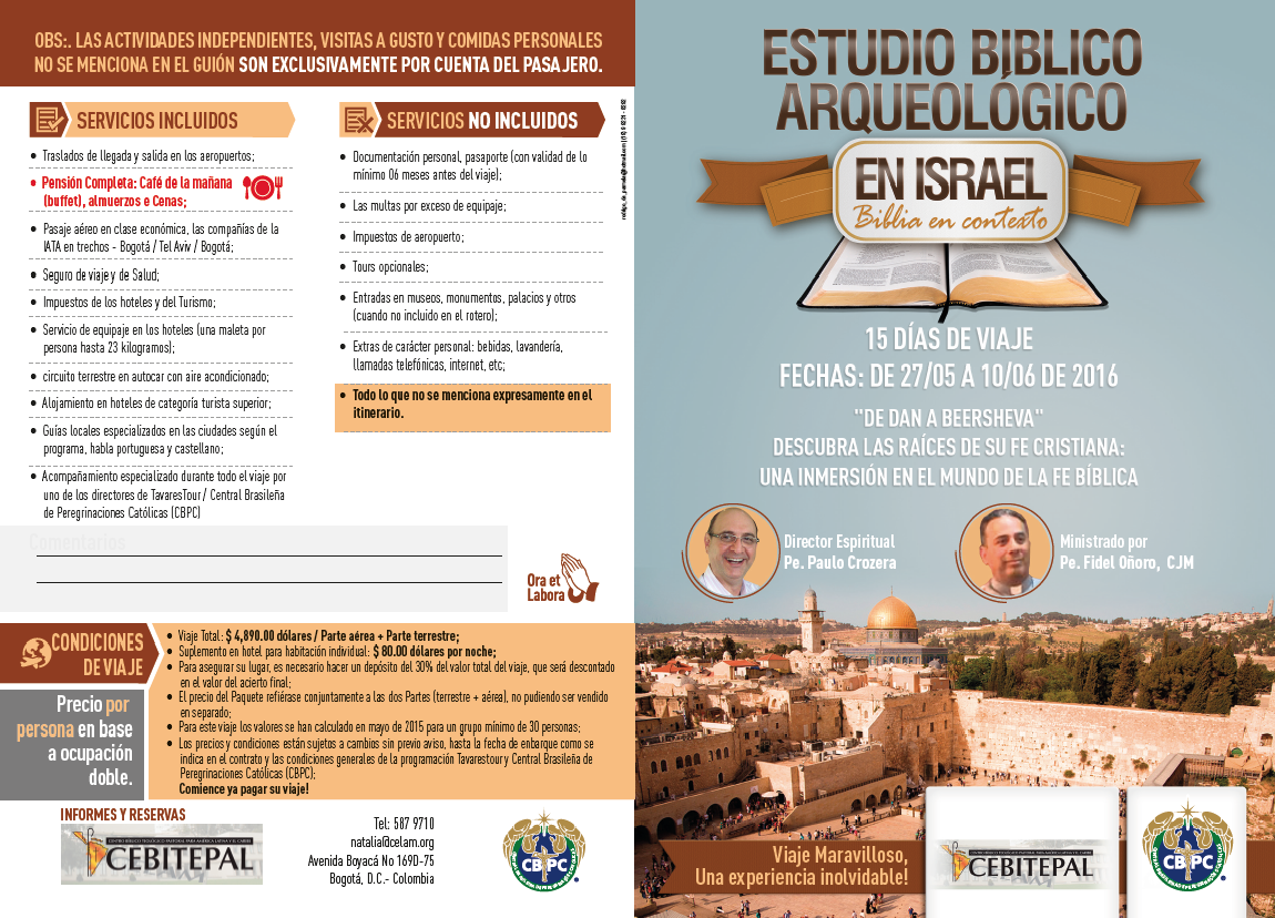 Para mayores informes favor comunicarse al e-mail natalial@celam.org – cebitepal.biblia@celam.org o al teléfono en Bogotá 5879710 Ext. 306.