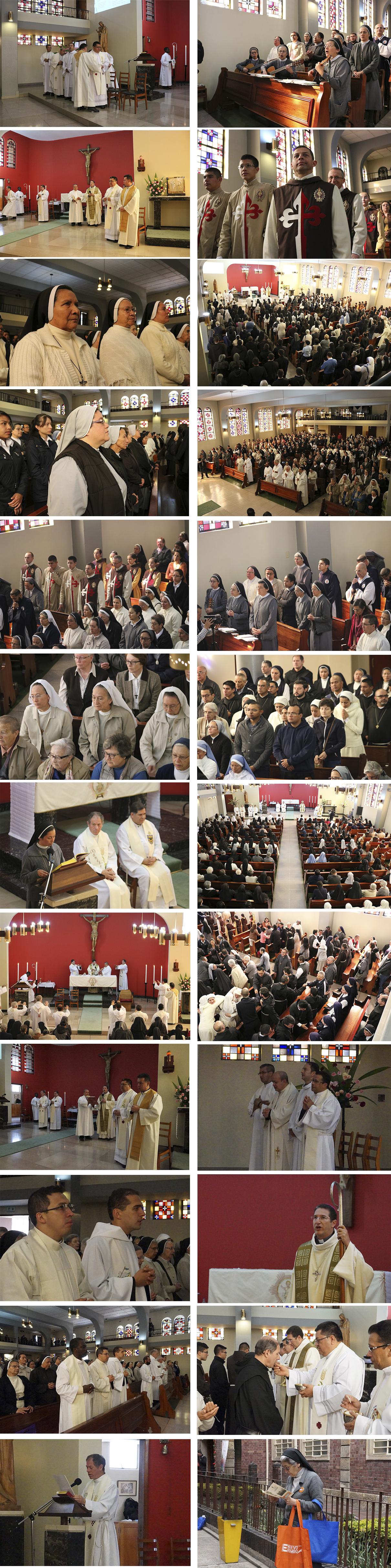 La Eucaristía fue presidida por el obispo auxiliar de Bogotá, Luis Manuel Alí, concelebraron monseñor Gabriel Londoño, quien por algo más de siete años fue el Vicario para la Vida religiosa y monseñor Julio Alejandro Henao De Brigard, el nuevo encargado; los acompañaron los seis arciprestes para la vida religiosa, uno de cada vicaría territorial.