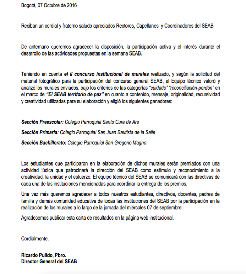 Centro de información Yo quiero Noticias Oraciones Boletines Eventos Artículos Canonización Mensajes del Señor Cardenal Cartas pastorales Homilías Mensajes La voz del pastor Documentos del Vaticano NoticiasMurales ganadores II concurso13 de Octubre de 2016 Like 0 Dislike 0 Noticias relacionadas Ordenaciones en la Catedral Primada de Colombia Tiempo de preparación para la Navidad Video del papa - noviembre de 2025