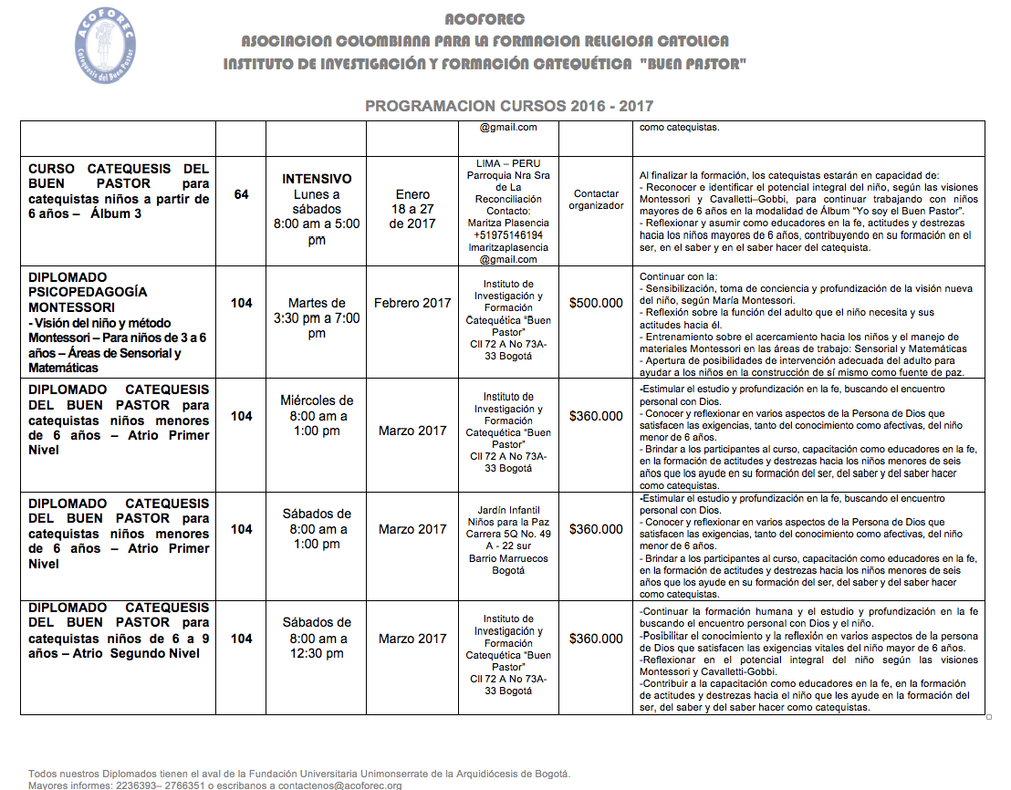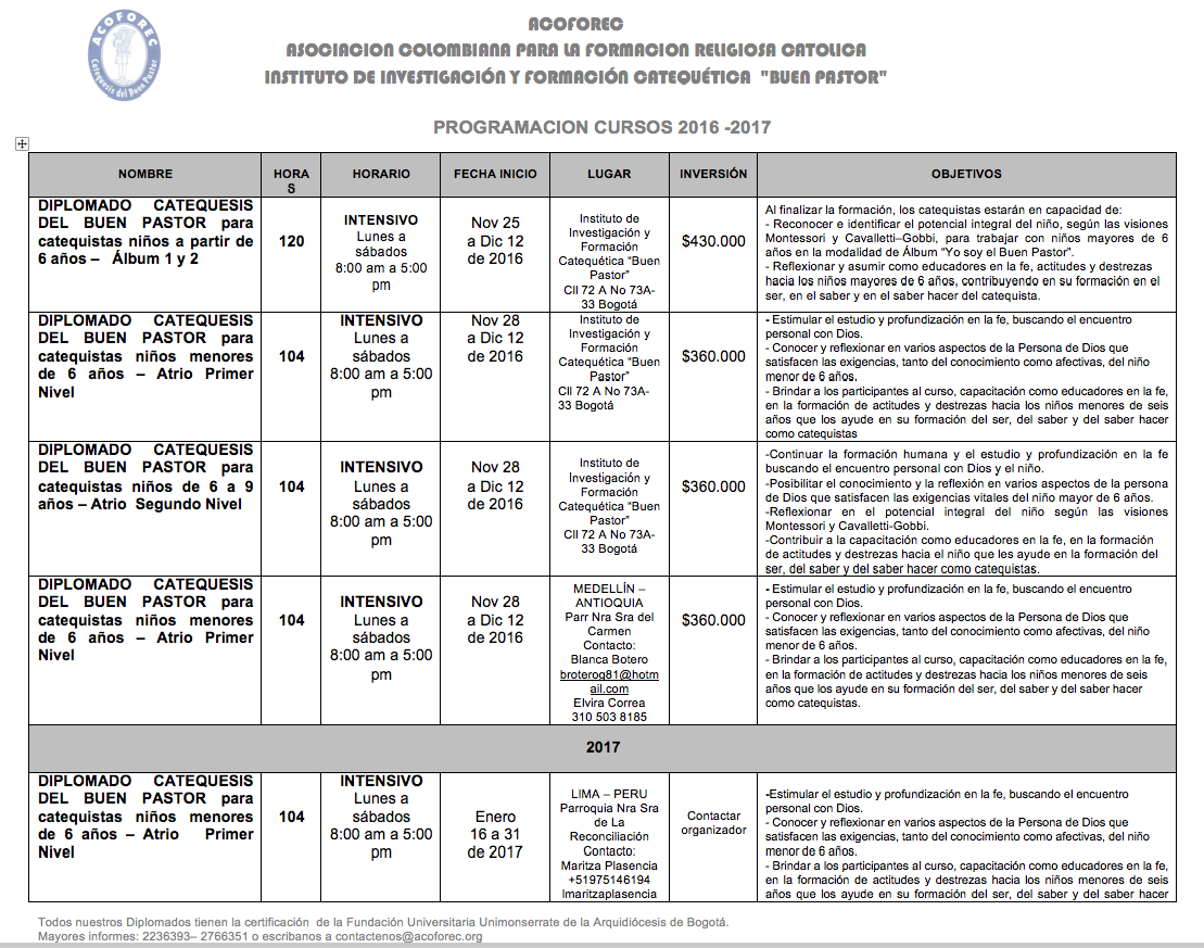 - Brindar a los participantes, la capacitación como catequistas de Iniciación Cristiana con la metodología de la Catequesis del Buen Pastor.