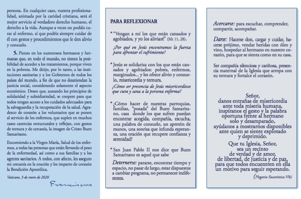 Centro de información Yo quiero Noticias Boletines Eventos Artículos Canonización Mensajes del Señor Cardenal Cartas pastorales Homilías Mensajes La voz del pastor Documentos del Vaticano NoticiasXXVIII Jornada mundial del enfermo, mensaje del Santo Padre Francisco11 de Febrero de 2020 Like 0 Dislike 0 Noticias relacionadas Ordenaciones en la Catedral Primada de Colombia Tiempo de preparación para la Navidad Video del papa - noviembre de 2025